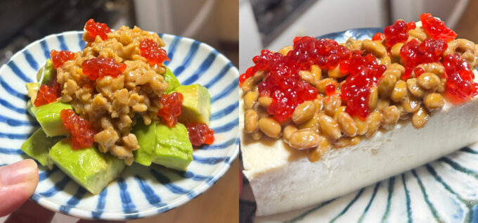 アボカドや豆腐に納豆×醤油筋子をのせてもおいしい