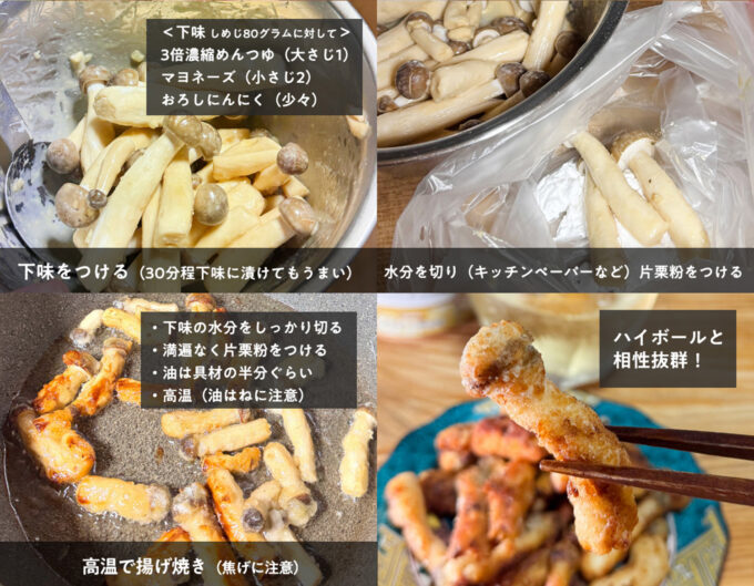 人気のおつまみレシピ「ぶなしめじの唐揚げ」