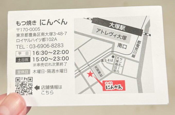 今回訪ねたのは2026年4月25日、大塚に移転オープンした「もつ焼き にんべん」。