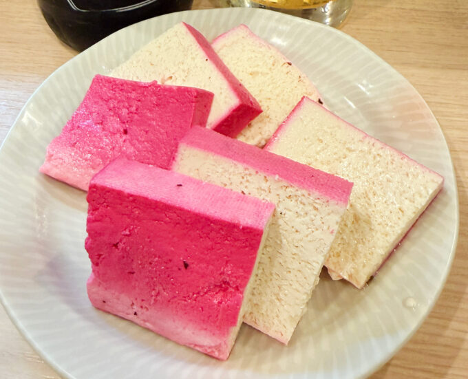「酢豆腐」をつまみながら、もつ焼きを待つとしよう。酸味があってさっぱりしているから、こってりしたもつ焼きの口直しにぴったり。