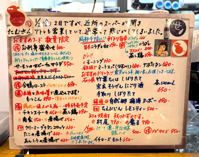 お刺身メニューなどはどんどん売切れていくので、食べたい場合は早い時間の訪問が吉。