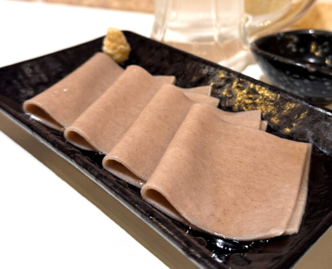 人気の「そば刺し」は、蕎麦と出汁の香り、山わさびのピリッと感がたまらない一皿。日本酒にもぴったり合います。
