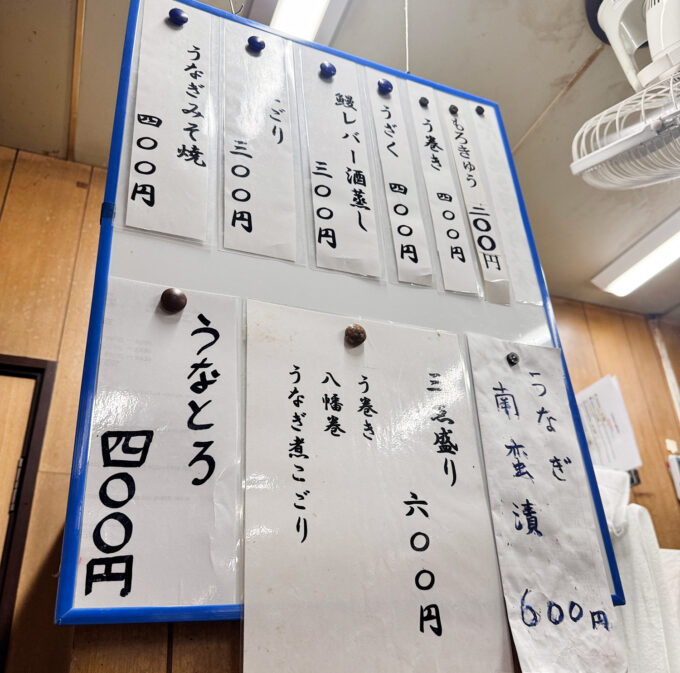 もろきゅう、う巻き、うざく、うなぎレバー酒蒸し、うなぎにこごり、うなぎみそ焼、うなぎ南蛮漬け、うなとろ…ずらりと並ぶメニューに、思わず目移り。これだけ並んでいるので、しっかり“うなぎ三昧”できます。