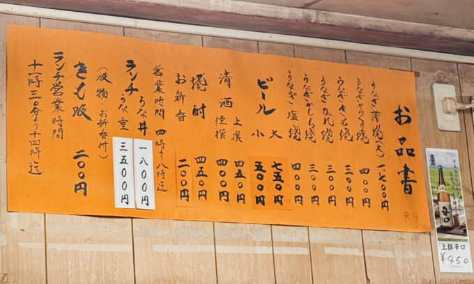 夜の時間帯は昼にはない「うなぎおつまみ」や「うなぎの串焼き」が楽しめたりもする。