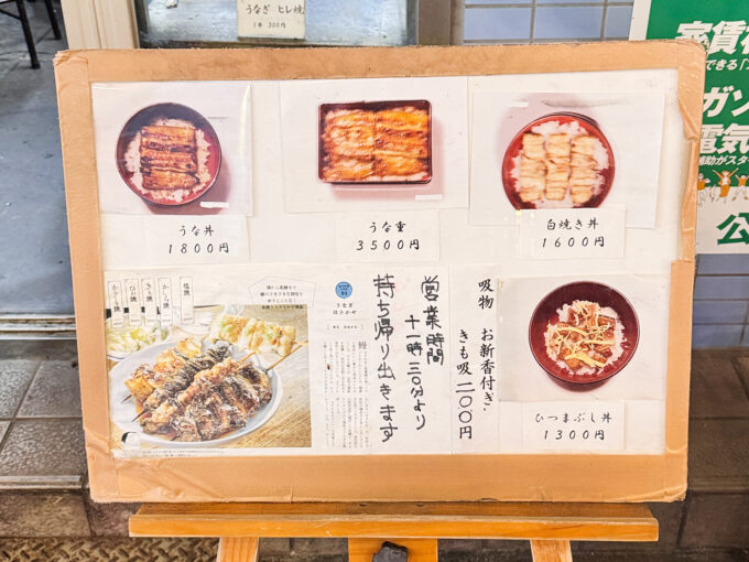 うな丼やうな重、白焼き丼、ひつまぶし丼など食事メニューもあります。