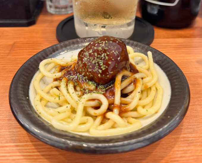 気になりすぎて注文した「なぞパスタ」は、もちもちの極太麺にミートボール!