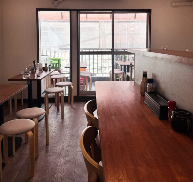 店内とバルコニーには、カウンター席のほか、4名掛けと6名掛けのテーブル席がいくつかあり、30名ちょっとが利用できそうな広さ。