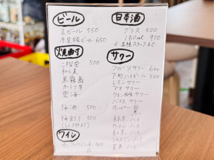 システムは口頭注文・伝票式の後払い。座れますが、お通しや席料はありません。