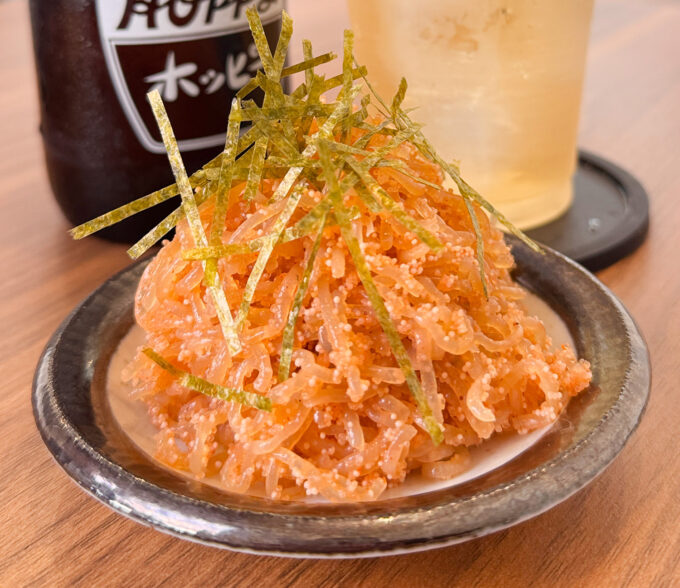 これまで色んな酒場で明太白滝を食べてきたけど、これはかなり好みのタイプ!やみつきになる味わいで、これさえあれば何杯でも呑めそう。