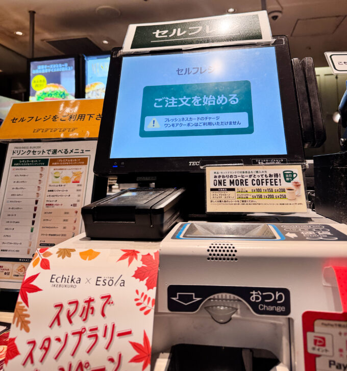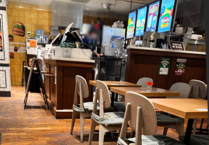 今回訪れたフレッシュネスバーガーの店舗は、注文支払いから飲食後の片付けまで、完全セルフ式。