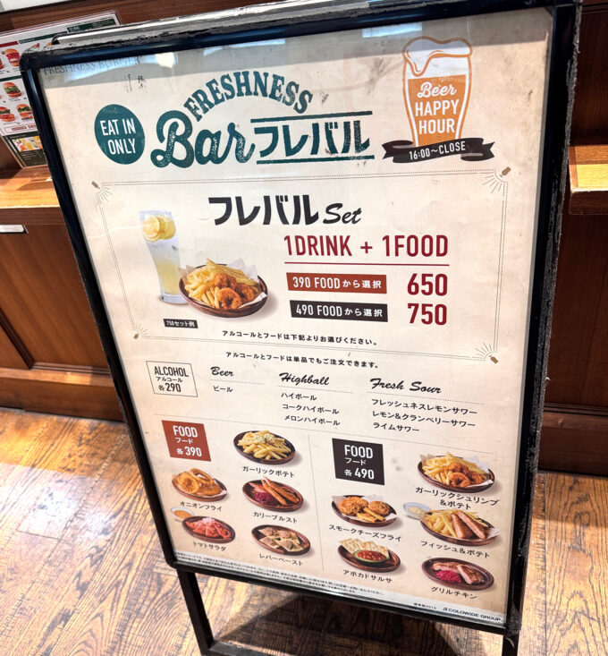 16時から楽しめるフレッシュネス「フレバル」のメニュー