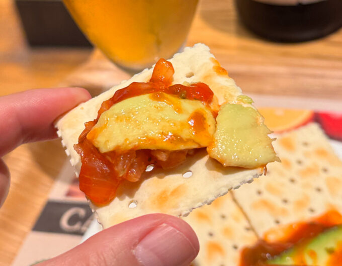 おつまみは、生のアボカドをお店でカットしているという「アボカドサルサ」。
