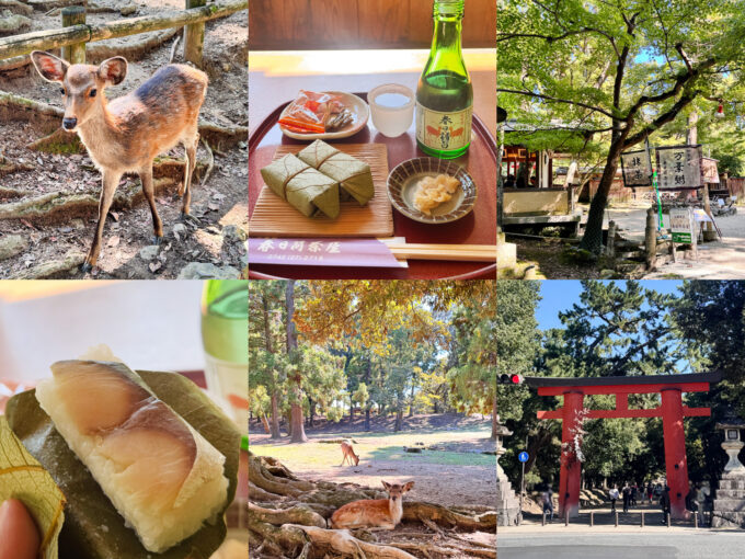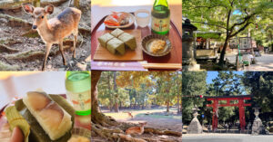 奈良で昼飲み「奈良公園」の老舗茶屋で柿の葉寿司と地酒に舌鼓/鹿に癒される