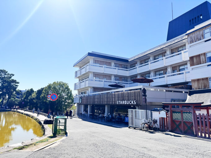 猿沢池の前にはスターバックスがあって、池を眺めながら一息つけるのがいいねぇ。