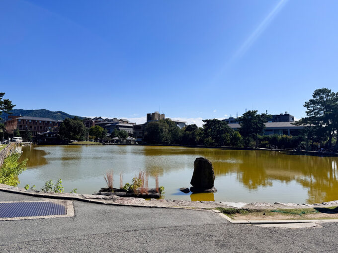 猿沢池(さるさわいけ)。興福寺の五重塔が水面に映るのが見どころらしいけど、よくわからず💦