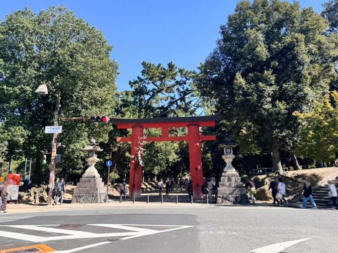 筆者の短い足で、歩くこと10分ほどで奈良公園の玄関口に到着。