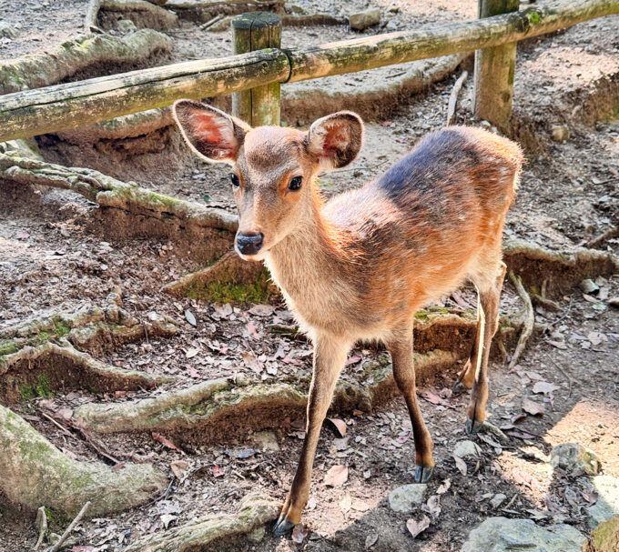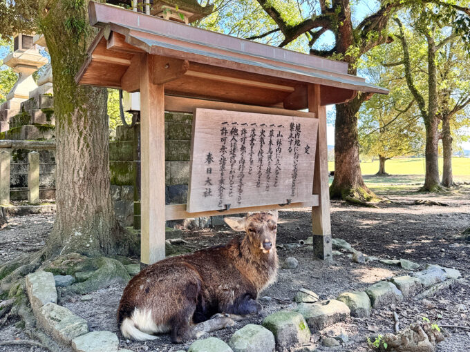 鳥居をくぐると空気が変わって、木漏れ日の下でのんびり暮らす、鹿さんたちの世界が広がっている。