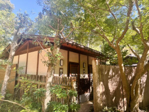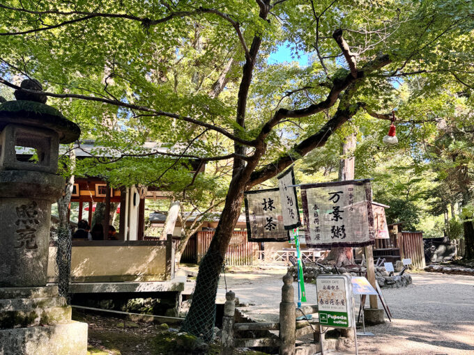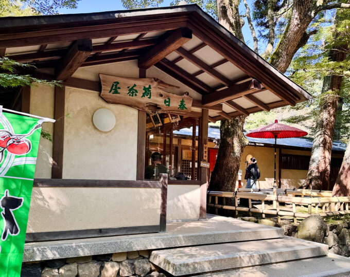 江戸時代の“荷茶屋”文化を受け継ぐ老舗茶屋で、木々に囲まれた参道の途中にあり、観光の合間にひと息つける癒しスポットです。