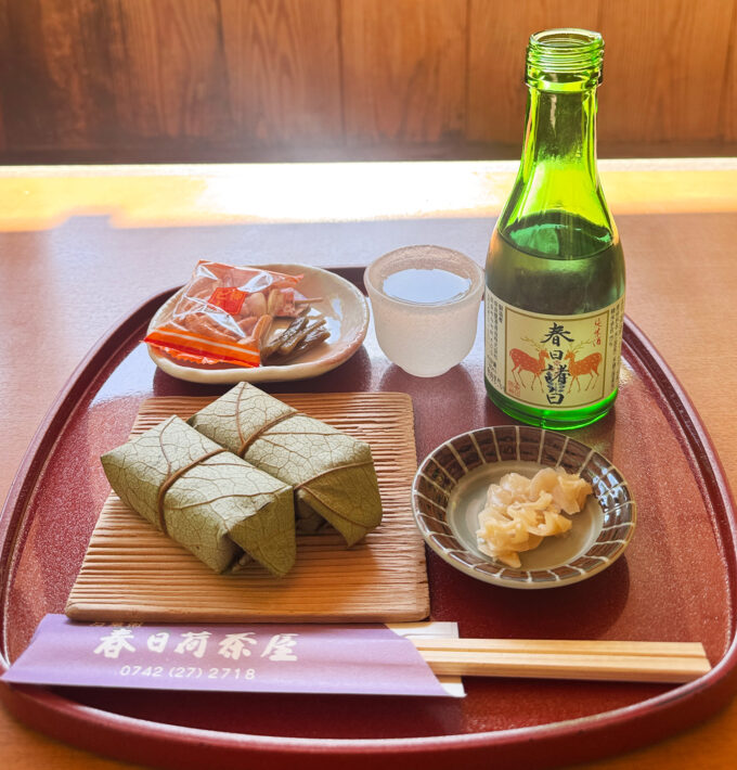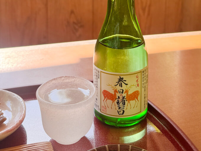 地酒の銘柄は「春日諸白(かすがもろはく)」。春日大社の御神酒として知られる1本で、地元の奈良豊澤酒造が手がけているそう。