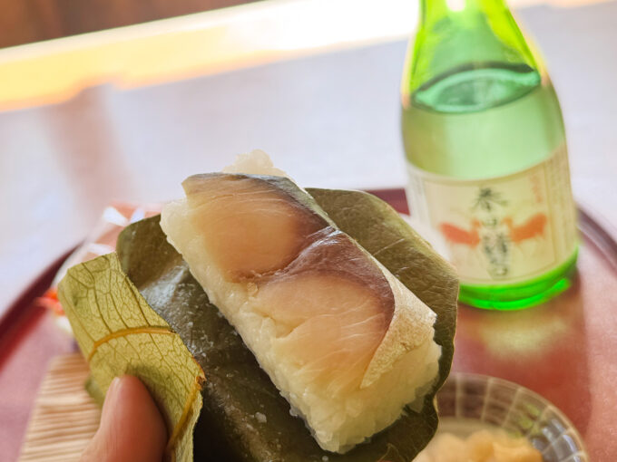 そんな柿の葉寿司を頬張って、春日諸白をクイッと。酸味のあるお寿司に、春日諸白がやさしく寄り添ってくれて、これまたおいしい。
