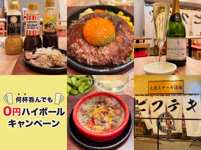 ビーフキッチンスタンド 横浜アソビル店のオープンを記念して、11月中は毎週日曜日(3日・9日・16日・23日・24日・30日)11:00〜17:00の時間帯に「ハイボール何杯でも0円」キャンペーンを実施予定だそうです。
