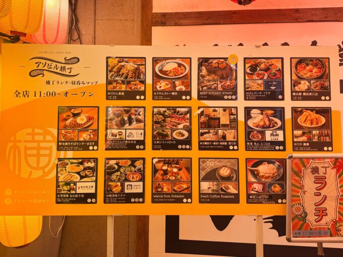 アソビルは全店11時オープンで、ランチ・昼飲みスポットがいろいろ。