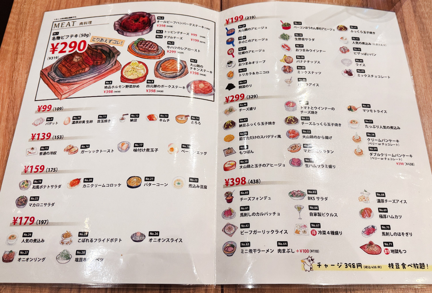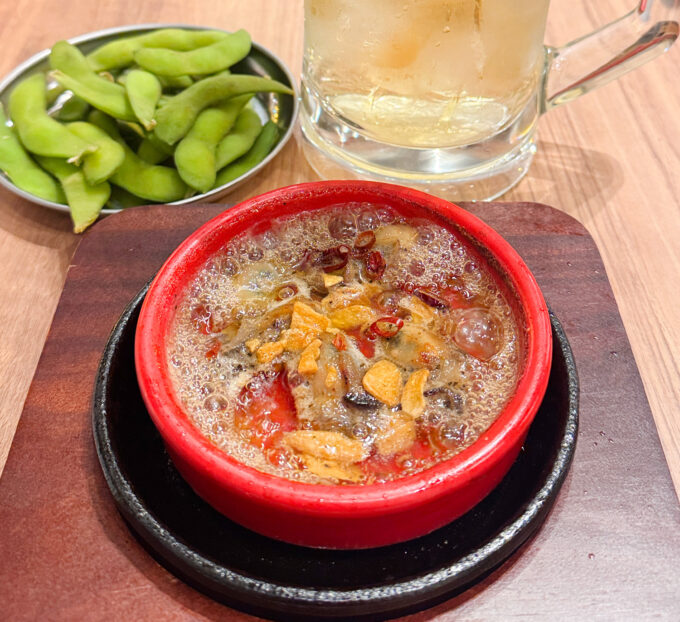 数年前と比べて、現在はチャージとして枝豆食べ放題が付くようになっていますが、昨今の価格高騰の中で、お酒もつまみも約10年前とほとんど変わらない価格帯というのがありがたいなぁ。