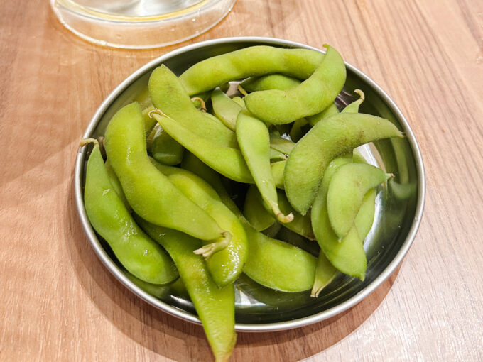お通しは、何度でもおかわりできる「枝豆食べ放題」。