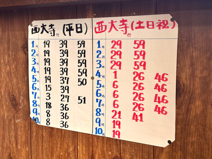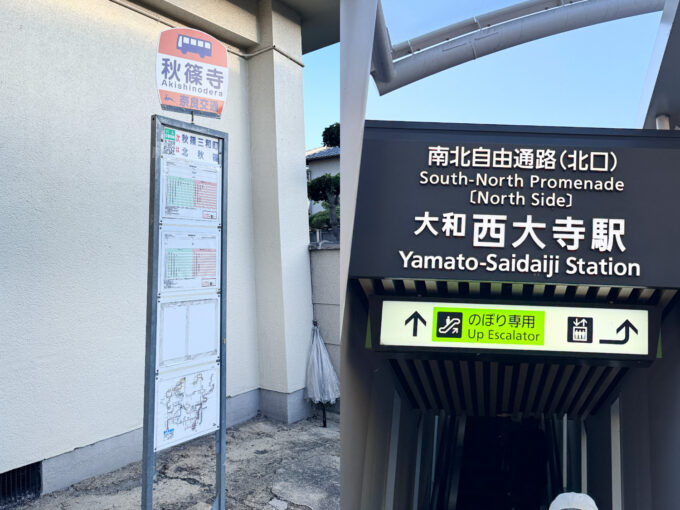 帰りは、岩田酒店から目と鼻の先にあるバス停(秋篠寺)からバスに乗り、大和西大寺駅まで。