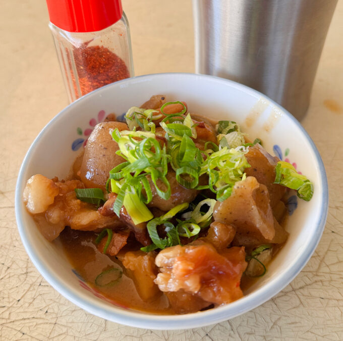 牛すじとこんにゃくたっぷりで、お味噌のコクがあって甘じょっぱくやさしい味わい。