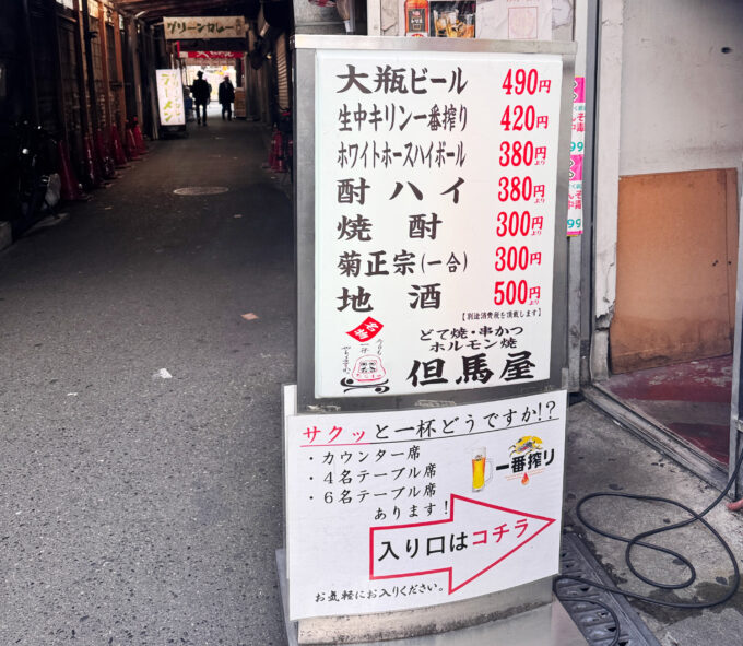 天満駅前で、朝10時から朝飲み・昼飲みも楽しめる大衆酒場「但馬屋」。