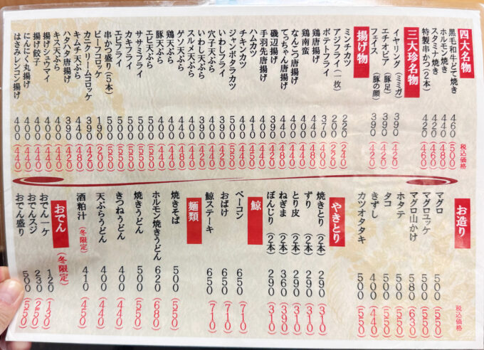 大阪・天満「但馬屋」のメニュー