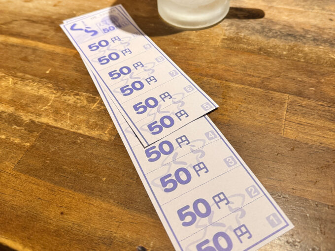 こういうチケット式の立ち飲み、昔はよくあって、財布や定期入れに余ったチケットを忍ばせていた。