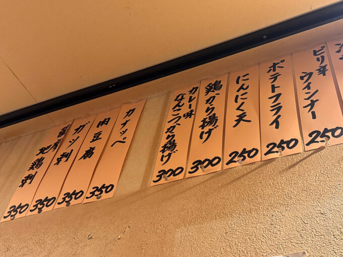 呑兵衛心をくすぐるラインナップがずらり。しかもプチプライスだから、ついアレコレ頼みたくなる。
