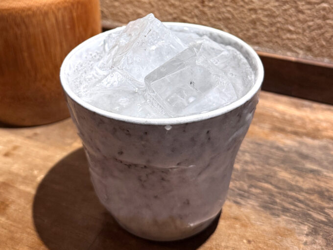 続いては「さつま美人ソーダ割り」。まろやかで芋の香りがふわ~っと。