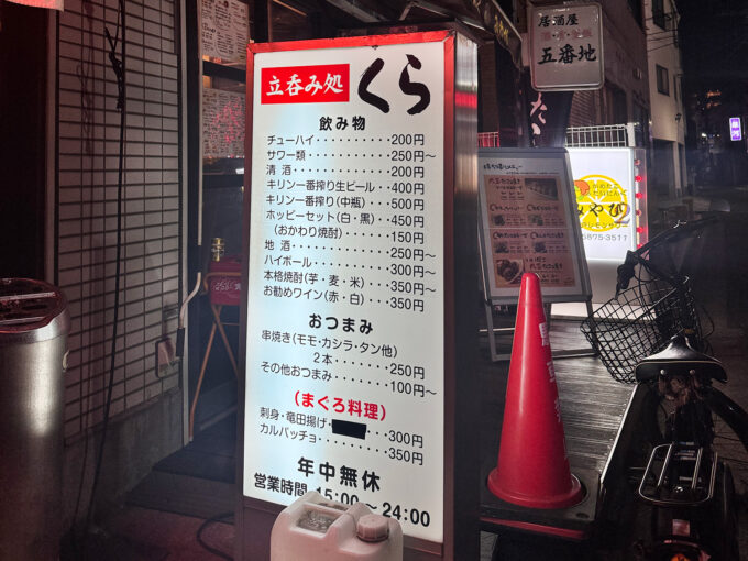 亀戸でせんべろや一人飲みにおすすめの立ち飲み居酒屋「立呑み処 くら」
