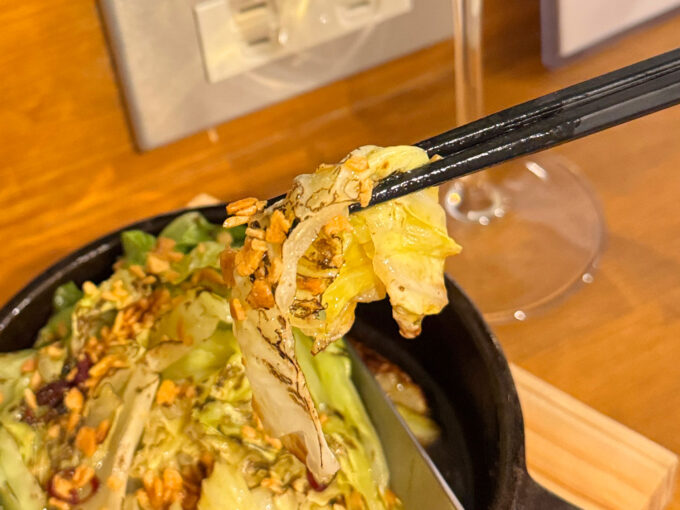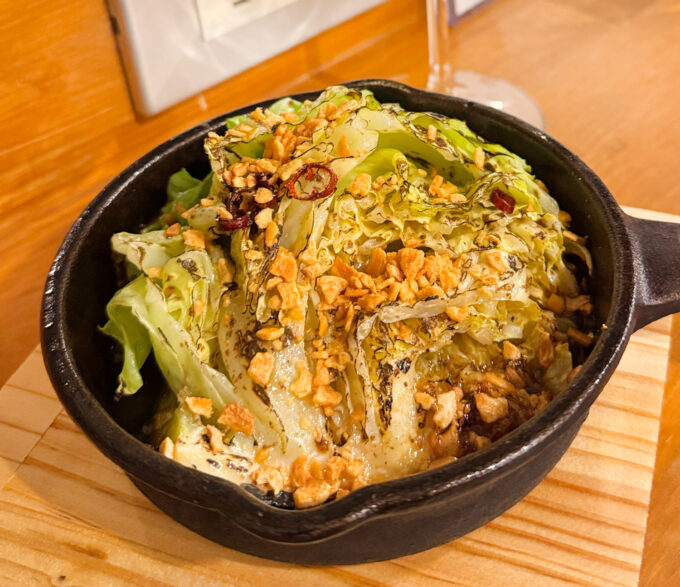 にんにくとアンチョビの香りと味わいがしっかり濃厚。そこにキャベツの甘みが加わって、無限にお酒がすすむやつ。