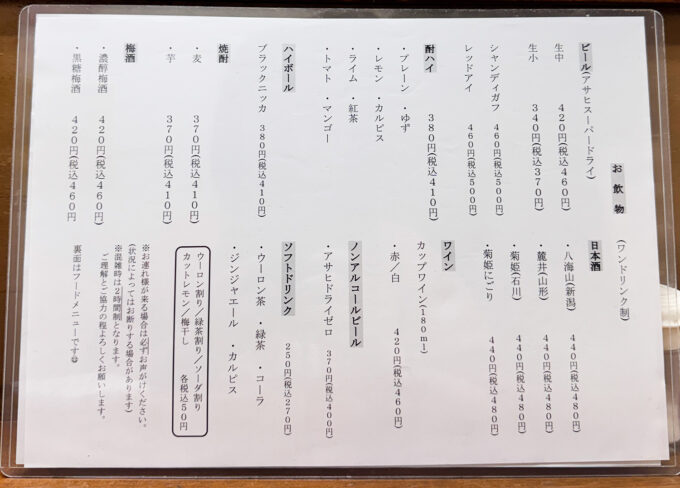 システムは伝票式の後払い。座れますがお通しや席料はありません。
