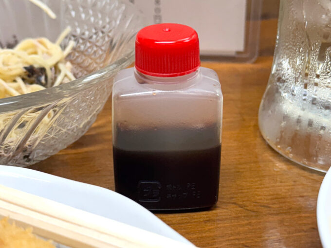 ソースはミニボトルをもらえて、自分でかけるスタイル(衛生的)。