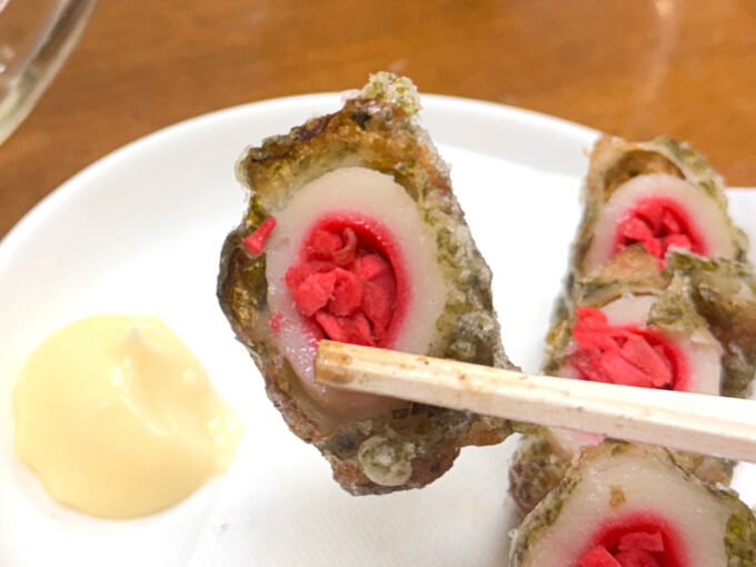 続いては「紅生姜ちくわの磯辺揚げ」。