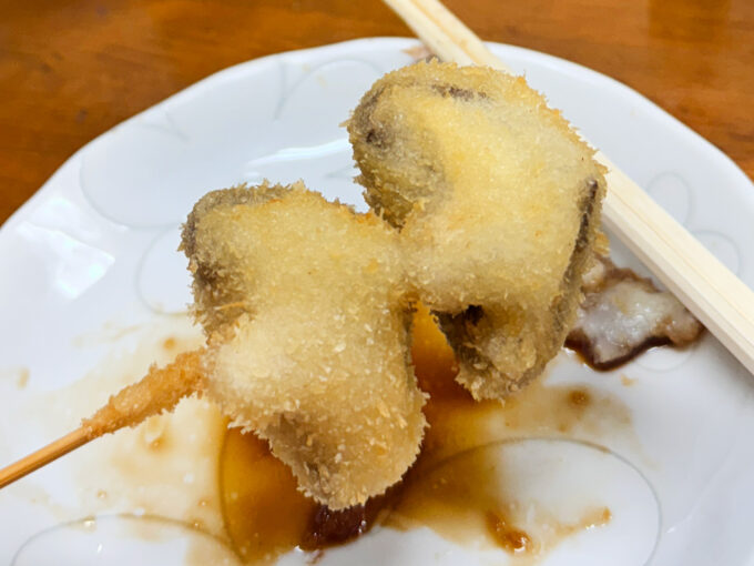 串かつの「しいたけ」は、サクッと軽い衣に、ぷるっとした食感。