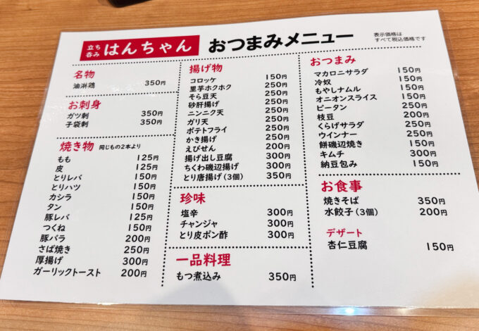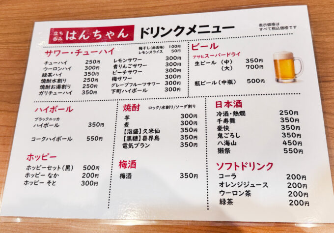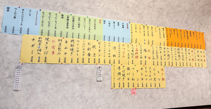 新小岩の立ち飲み「はんちゃん」のメニュー
