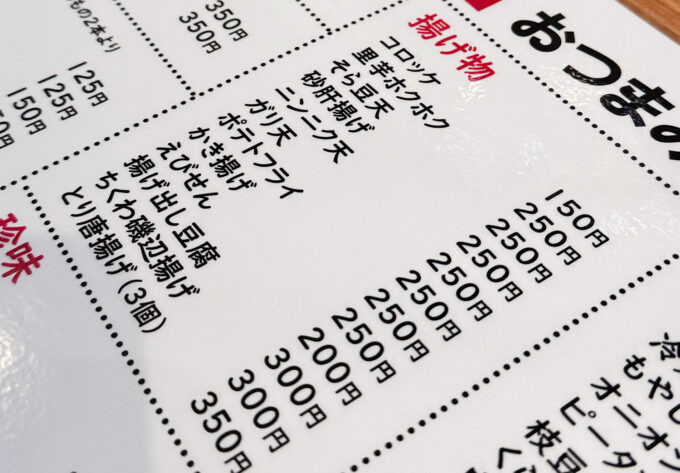 おつまみは150円から。