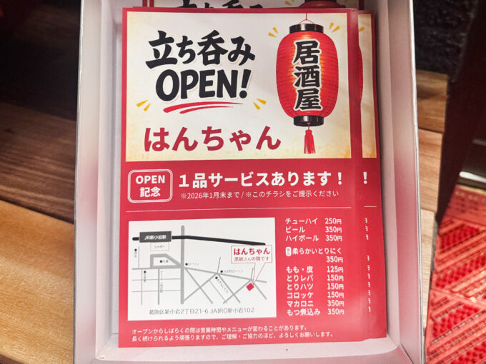 新小岩でせんべろできる立ち飲み居酒屋「はんちゃん」がオープン