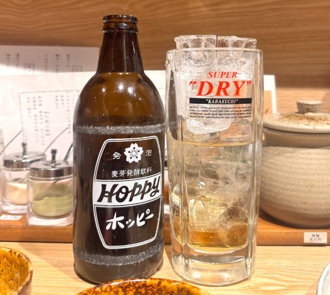 すると、ホッピーのようにナカ・ソトスタイルで、瓶の強炭酸が登場して、テンション上がるなぁ。