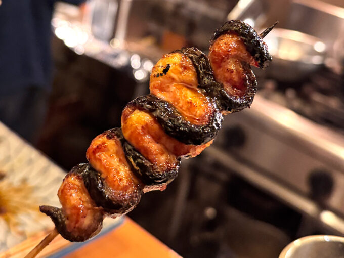 (目の前が調理場なので、串が焼き上がっていく様子を眺めているだけでも、つまみになる)