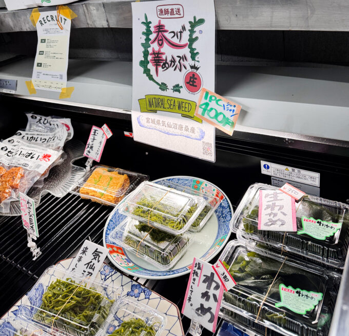 この日は、気仙沼から届いたばかりの「華めかぶ」が売場に並んでいました。