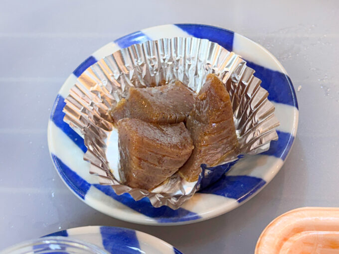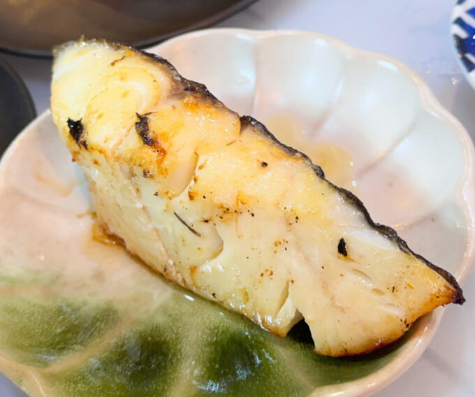 尋ねると、「これ、銀だらでめちゃうまいです!金山寺味噌で、西京焼きとかより甘くないんですよ」とのこと。