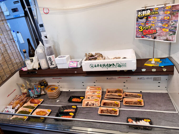 パックのお刺身はもちろん、焼き魚も店内で楽しめるのが最高!