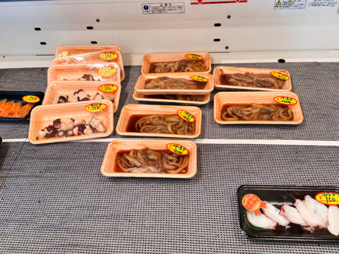 曜日限定で、夜は立ち飲み営業をされていて、売場の鮮魚をつまみにちょっと一杯楽しめるんです。